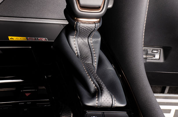 純正形状のレザーシフトブーツです。中央にスポーティなパンチング素材をあしらうモデルとなります。また、左右に入ったステッチも純正近似色にこだわり、上質で高級感のあるインテリアを実現します。当社レザーシフトノブとの相性もとても良いです。