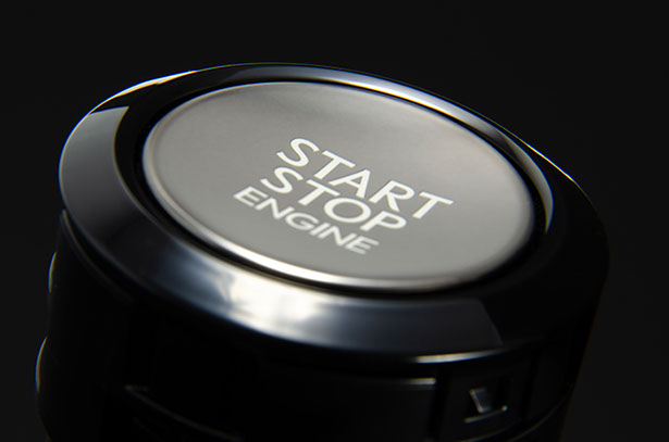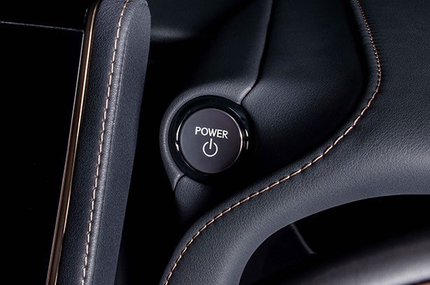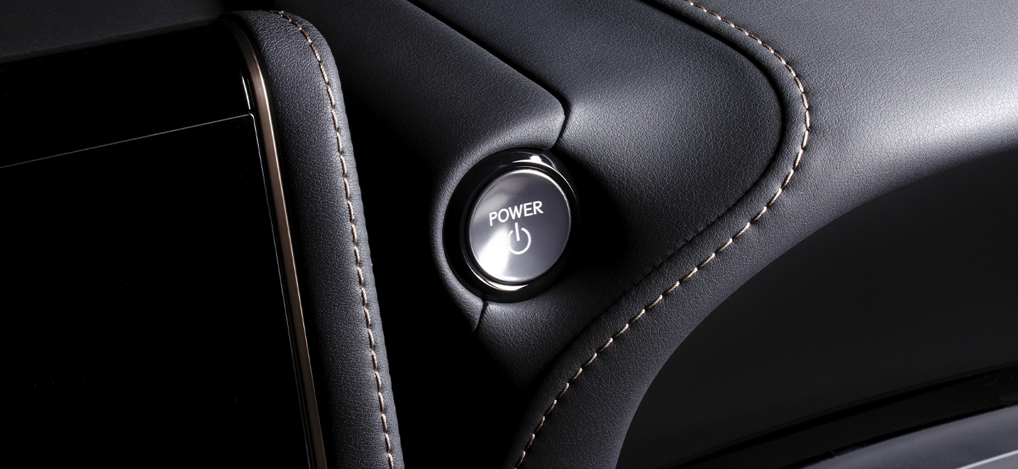 LEXUS 意匠のGASOLINE 用スタートボタンです。トヨタとは異なった光輝シルバーのボタンは逆アールのかかったデザインで、触り心地も流石レクサスといった感触です。外周のリングもトヨタとは異なり、丸みを帯びたスムーズなイメージとなります。ガソリン意匠ですが、ハイブリッド車にも使用出来ます。