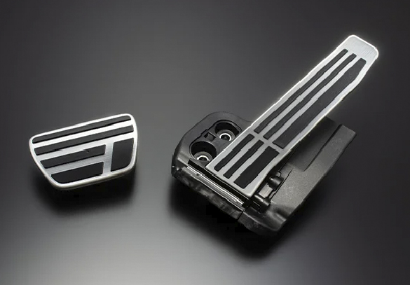本アルミニウム素材のスポーティなLEXUS純正ペダルセットです。近年のトヨタモデルと同じくオルガン風吊り下げ方式を採用のアクセルペダルの他、ブレーキペダルとのセットにてお届け致します。