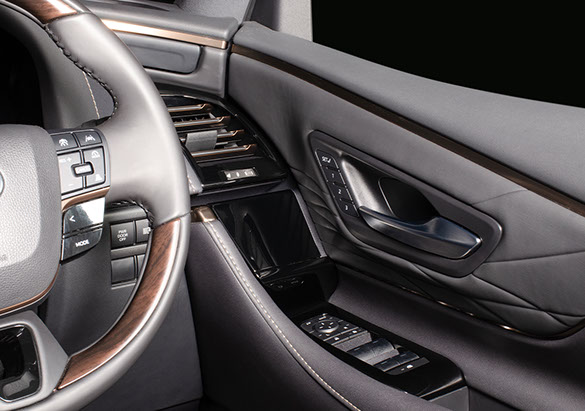 純正ウインドウ スイッチパネルの加工品です。今回の40系アルファード・ヴェルファイアの内装で本当に残念なウインドウ スイッチパネル周りのチープ感を無くすために、純正部品を一つ一つ職人がピアノブラックに仕上げた商品です。貼り付けパネルとは違う、その仕上がりは上質で高級感のあるインテリアを実現します。