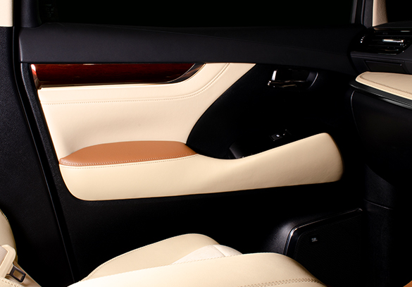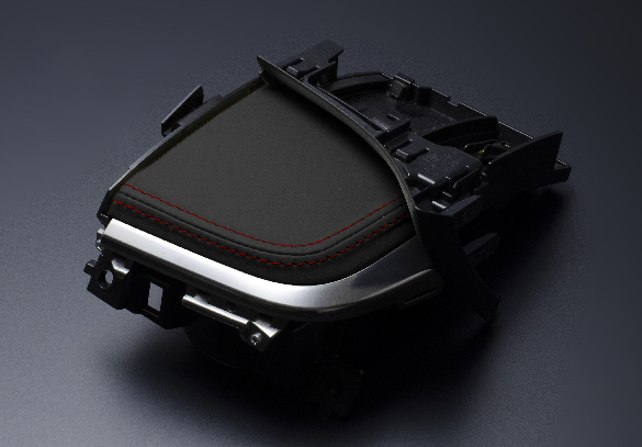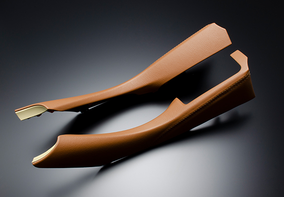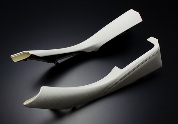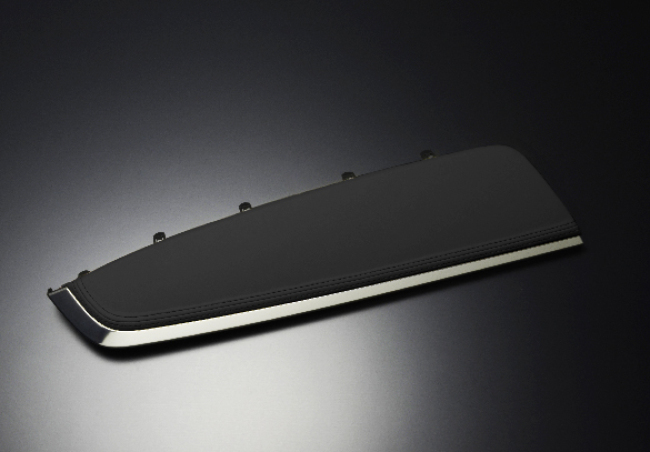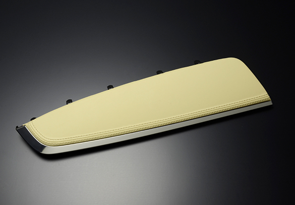 大型コンソールのサイド部分を彩るコンソールサイドガーニッシュの純正表皮を剥がして、合皮レザーを貼り込み純正同様にステッチを施しております。純正では飽き足らない拘りのオーナー様へ向けてのパーツとなります。
