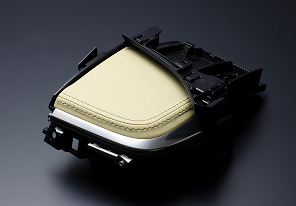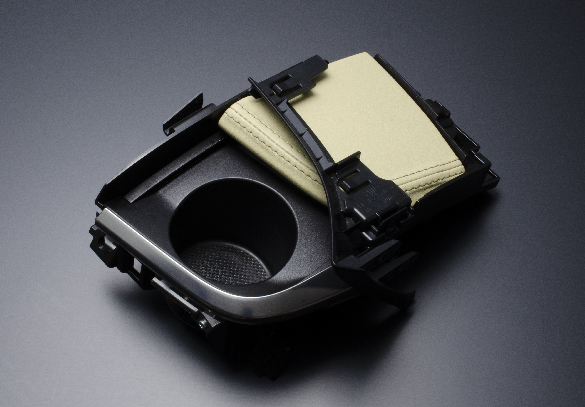 運転席カップホルダーのスライドカバー部分にPVCレザーを貼込み、さらにダブルステッチを施した商品です。純正オーナメントはあえて消し、内装色への統一を計った製品です。