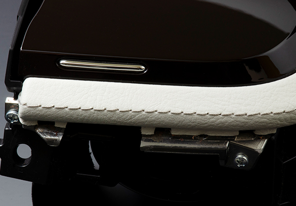 バックスクラッチャー 【SEMI ORDER INTERIOR】は、純正部品を基に弊社でご用意したパターン、表皮カラー、ステッチカラー、純正インテリア オーナメントをお客様のお好きな組み合わせでお選び頂けるインテリアパーツです。表皮素材は純正近似のPVCレザー(合皮レザー)をはじめ、純正には無いカラーリングのPVCレザー(合皮レザー)をご用意致しました。また、ステッチに関しましても6種類のステッチカラーからお選び頂け、純正オーナメントに関してましても全グレードの中からお選び頂けます。