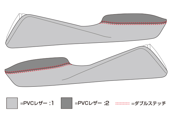 *オーダー時に、PVCカラー:1・PVCカラー:2・ステッチカラーの指定が必要です。