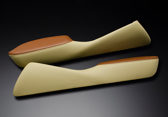 フロントドア アームレストです。本体部分と上部部分を異なったカラーリングでの御定案です。(価格は変わりませんが、同色でのオーダーも可能です。)