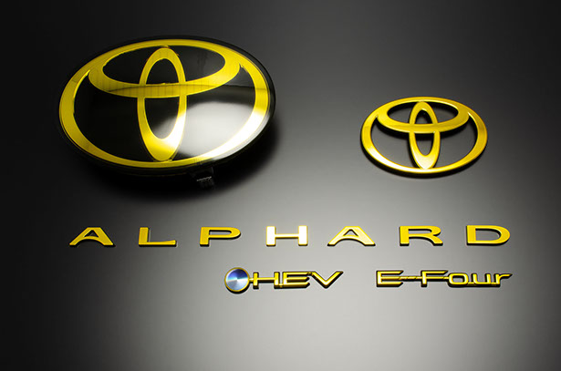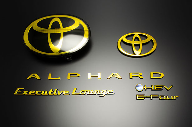 販売内容は、フロント用T-MARK、リヤ用T-MARK,リヤ/ALPHARDエンブレム、リヤ/HEVエンブレム,リヤ/E-Fourエンブレム,リヤ/Executive Loungeエンブレム,